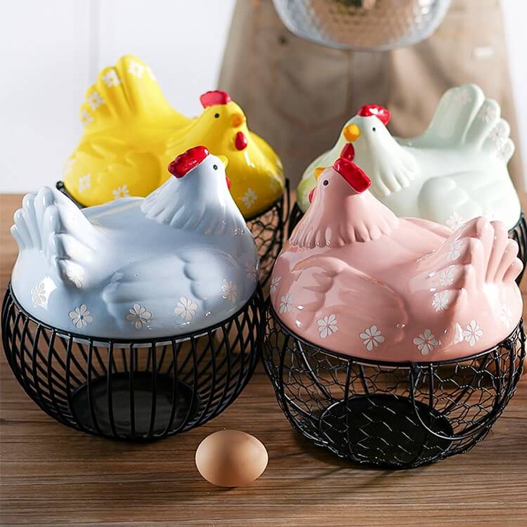 • HUSVÄRMANDE GÅVA - Ge en inbrottspresent av en hönsmamma som värmer sina ägg! Den här hållbara järnkorgen kan användas i kylskåpet, i skafferiet eller på bänkskivan, vilket gör den till en perfekt gåva till alla som flyttar in i ett nytt hus, en ny lägenhet eller ett studentrum. Både stadsbor och bönder kommer att älska denna söta och funktionella förvaringskorg för köket!