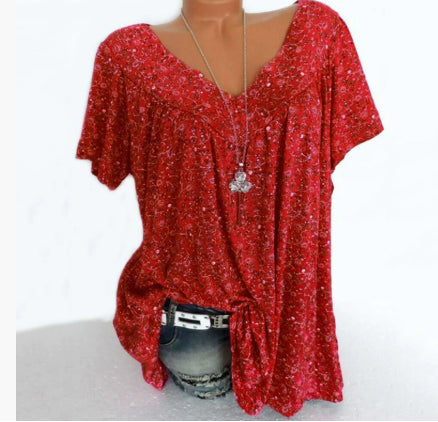 Med sin V-hals, korta ärmar och enhetlig design erbjuder blusen ett enkelt men stiligt utseende som aldrig går ur modet. Den lätta och välventilerade tyget gör att du kan känna dig bekväm hela dagen.