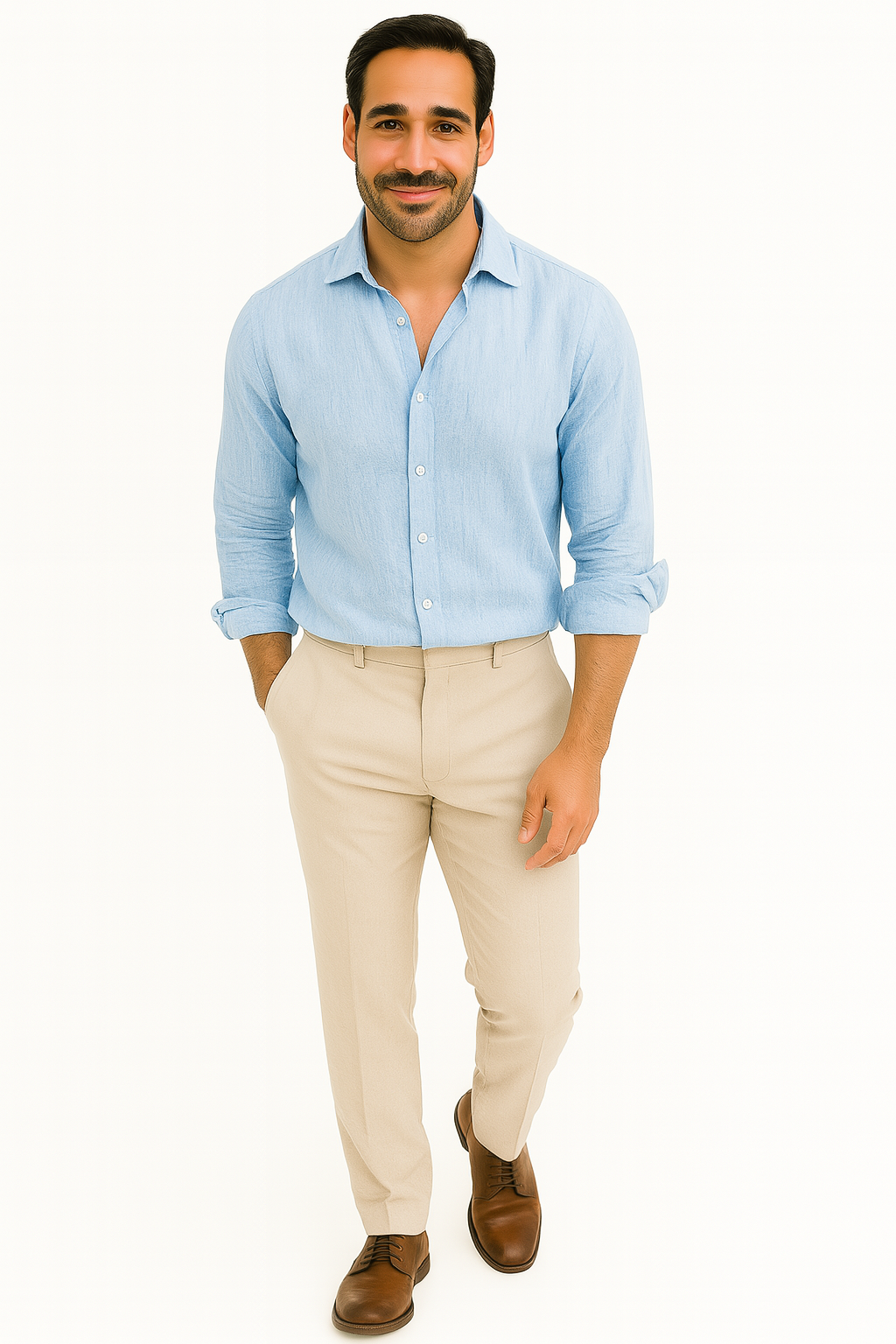 Med sin diskreta sofistikering och mjuka blå nyans, passar den utmärkt för både smart casual styling och avslappnade helger. Den lätta designen gör den idealisk för att bära under varma dagar, samtidigt som den ger en avslappnad känsla.