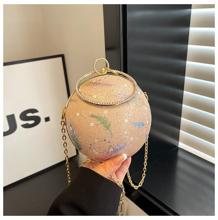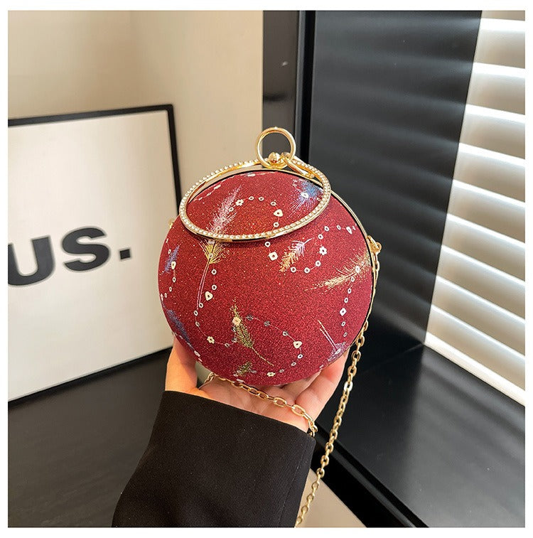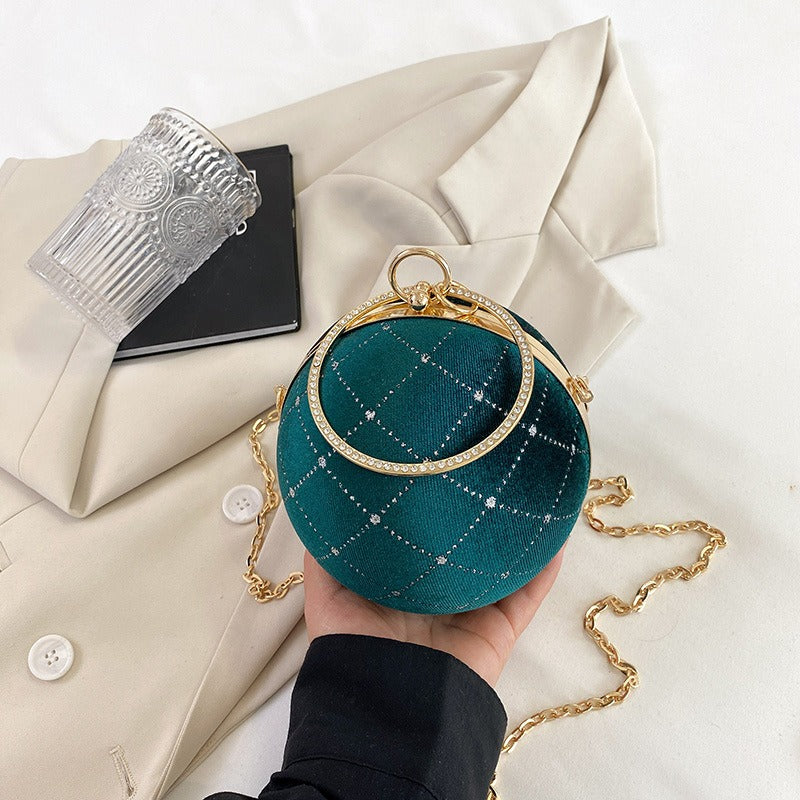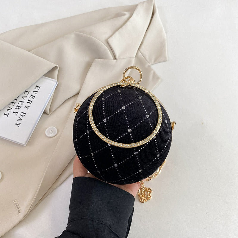 Konstellation Sammet Handväska är en unik rund väska med ett enkelt lås och gott om plats för alla dina nödvändigheter. Det här är ett absolut måste-ha-tillbehör! Komplimangerna kommer att vara oändliga!