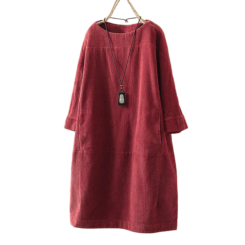 Klänningen "Tina" förenar elegans och komfort på ett perfekt sätt. Med sin tidlösa design och bekväma passform är den det ideala valet för kvinnor som söker ett mångsidigt plagg.