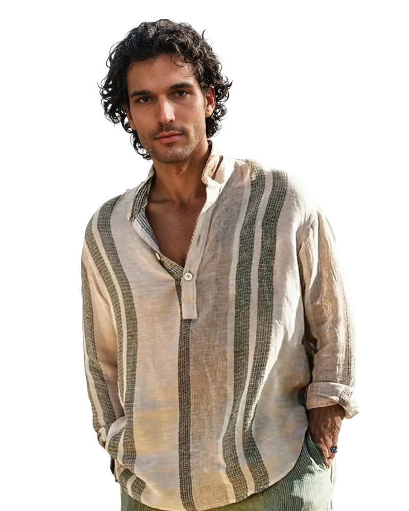 Denna löst sittande skjorta för herrar är tillverkad i Linblandning och passar perfekt för avslappnade dagar. Idealisk för semester, strandpromenader eller vardagsbruk. Det svala materialet och den luftiga passformen ger komfort hela sommaren.