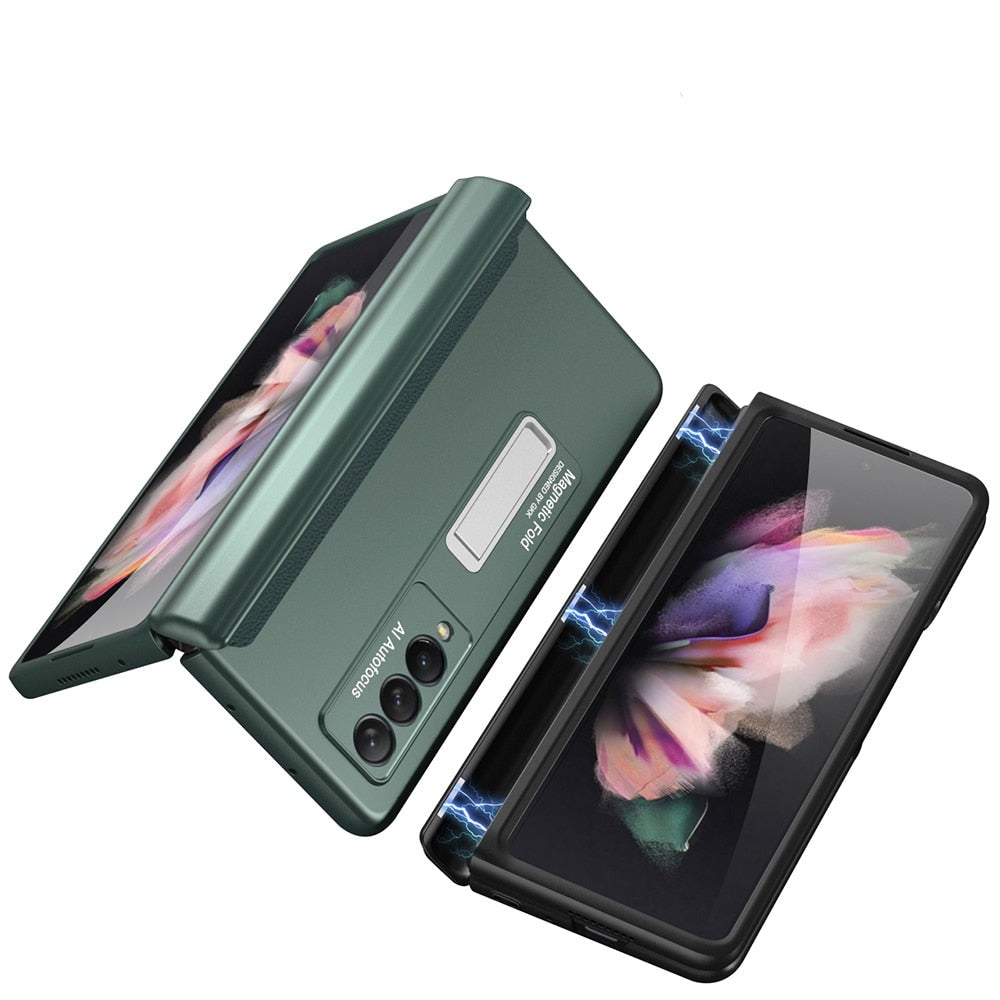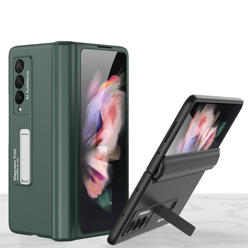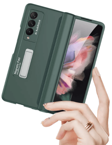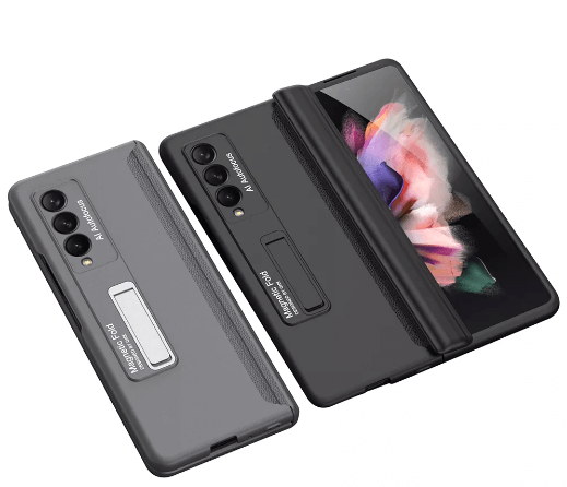 Har du någonsin upplevt att telefonen glider ur handen när du använder den utomhus eller på tunnelbanan? Hard Case Bracket Stand är speciellt utformat för Samsung Galaxy Z Fold 3. Den använder förstärkt PC-material, vilket gör den hållbar.