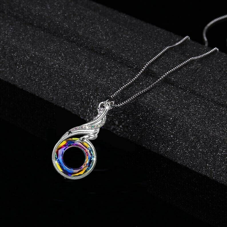 Liksom Fenixen är det här halsbandet en inspirerande symbol för styrka och ny början. Halsbandet har en fantastisk design med livfulla flerfärgade kristaller. Det är perfekt för alla tillfällen och passar till vilken outfit som helst. Det är en unik och omtänksam gåva till alla som vänder ett nytt kapitel i sitt liv!