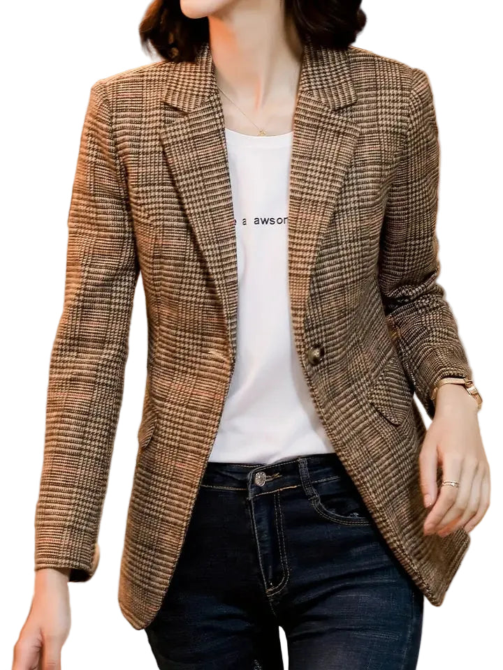 Denna rutig kavaj med en knapp i lapel är en tidlös klassiker som ger varje outfit en sofistikerad touch. Känn dig självsäker och stilfull i denna fantastiska kavaj.