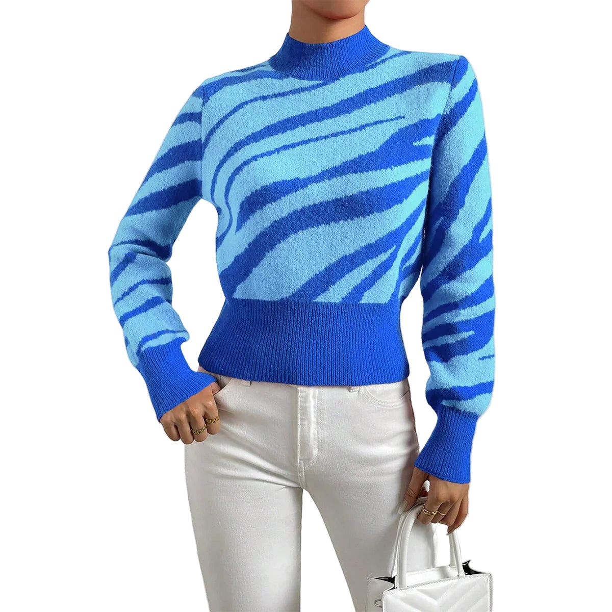 Uppgradera din garderob med denna stiliga stickade tröja. Den unika designen med zebramönster och halvhög hals ger en modern känsla som är både bekväm och trendig.