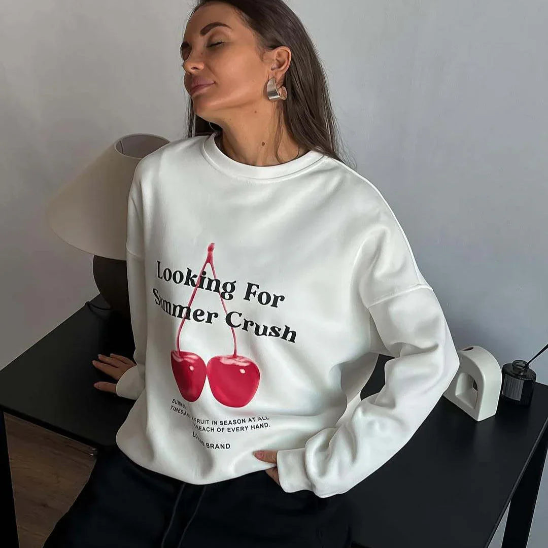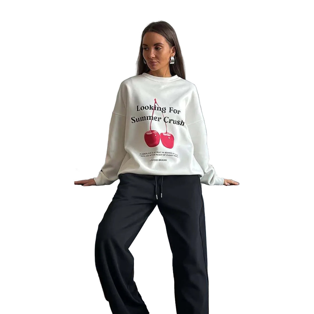 Denna överdimensionerade tröja har ett djärvt grafiskt tryck som ger en unik touch till din outfit. Med sin klassiska runda hals och avslappnade passform är den idealisk att kombinera med leggings för en sportig look eller med jeans för en mer chic stil. Perfekt för alla säsonger, är detta plagg ett måste i varje kvinnas garderob.