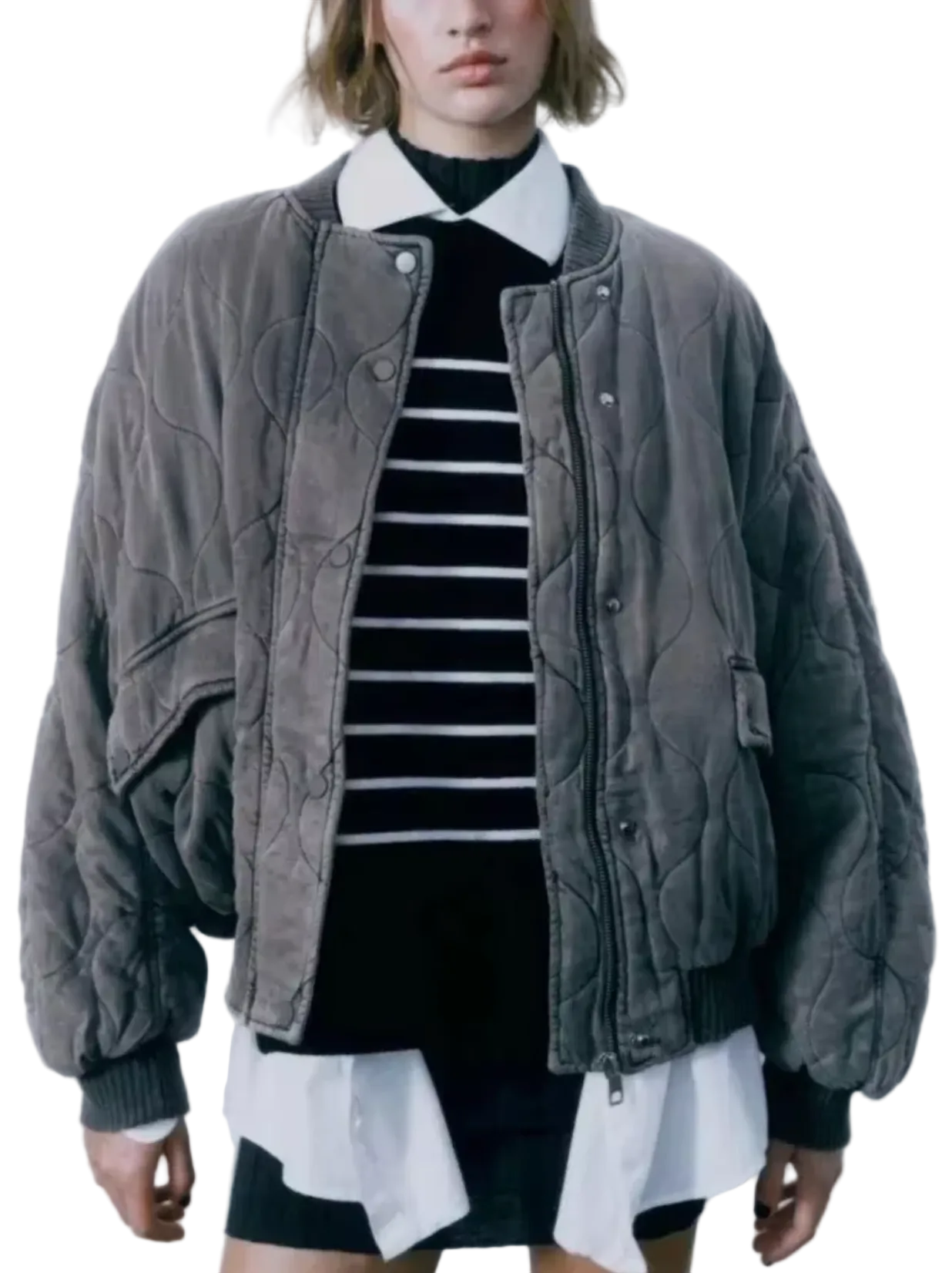 Jackan har en tidlös design med en rund hals och en lös passform som gör den idealisk för lager. Dragkedjan fram ger en modern touch, medan knäppningen tillför en vintage-känsla. Med sin klassiska siluett är denna jacka ett måste i varje garderob.