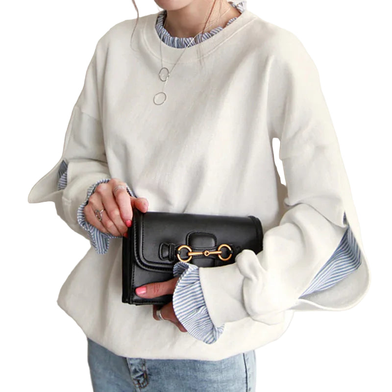 Tröjan har en unik design med charmiga volanger och skiktade muddarna som ger en feminin touch. Den är idealisk för både hemmabruk och utomhusaktiviteter, vilket gör den till ett mångsidigt tillskott i din garderob.