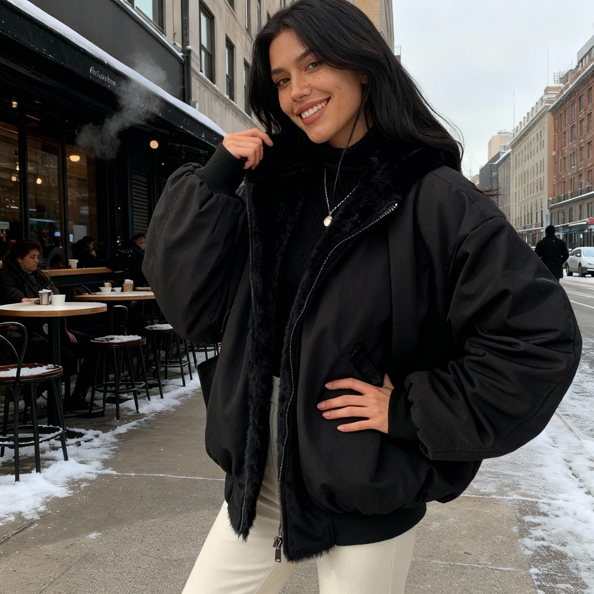 Upplev en ny nivå av komfort med denna överdimensionerade vinterkappa. Den är designad för att hålla dig varm och bekväm under kalla vinterdagar.