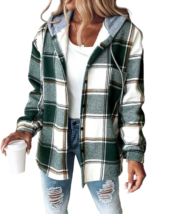 Denna rutig huvjacka erbjuder en perfekt kombination av stil och komfort. Att bära den ger en känsla av avslappnad elegans, oavsett tillfälle.