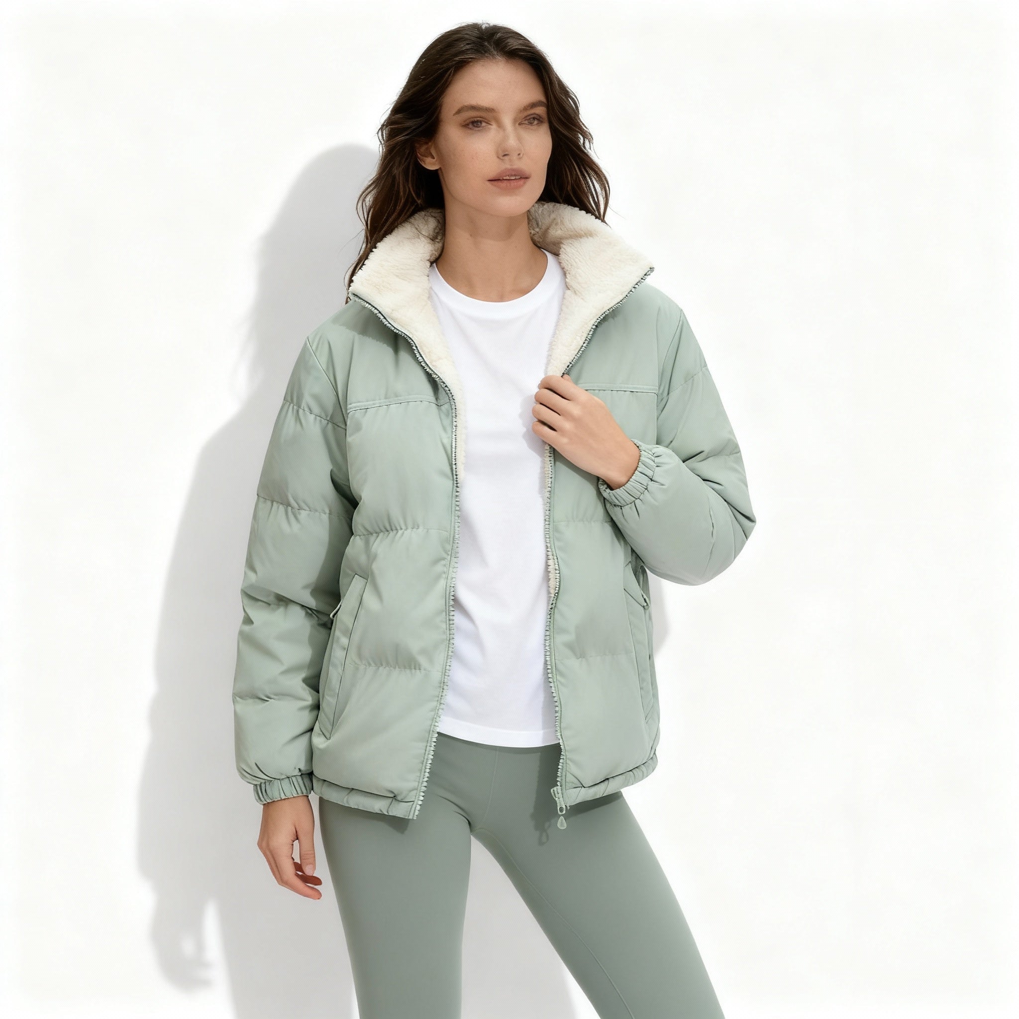 Jackan har en trendig quiltad design som kombinerar funktionalitet med mode. Med sitt lösa snitt och robusta tyg är den både bekväm och hållbar, vilket gör den idealisk för daglig användning. Den stående kragen skyddar mot vind och ger en stilren siluett.