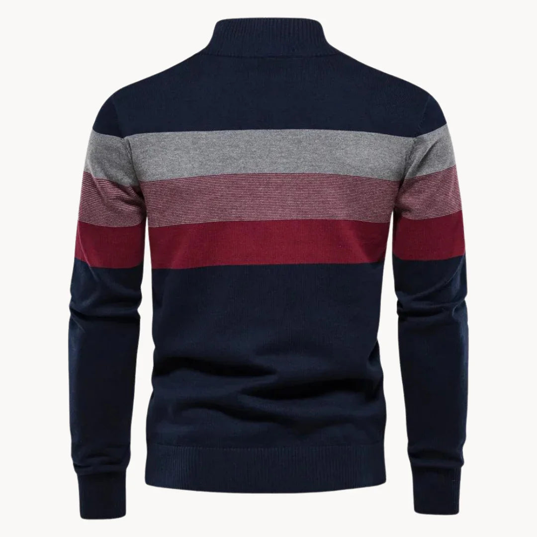 Med sin klassiska randiga design erbjuder denna tröja både värme och en sofistikerad look. Kvartsdragkedjan ger möjlighet till varierad styling, oavsett om du vill ha en avslappnad eller mer polerad stil. Den slimmade passformen framhäver din siluett och ger dig den flexibilitet du behöver för att känna dig bekväm hela dagen.