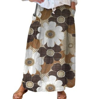 Kvinna Linne-stil Kjol med Retro Prickar och Fickor