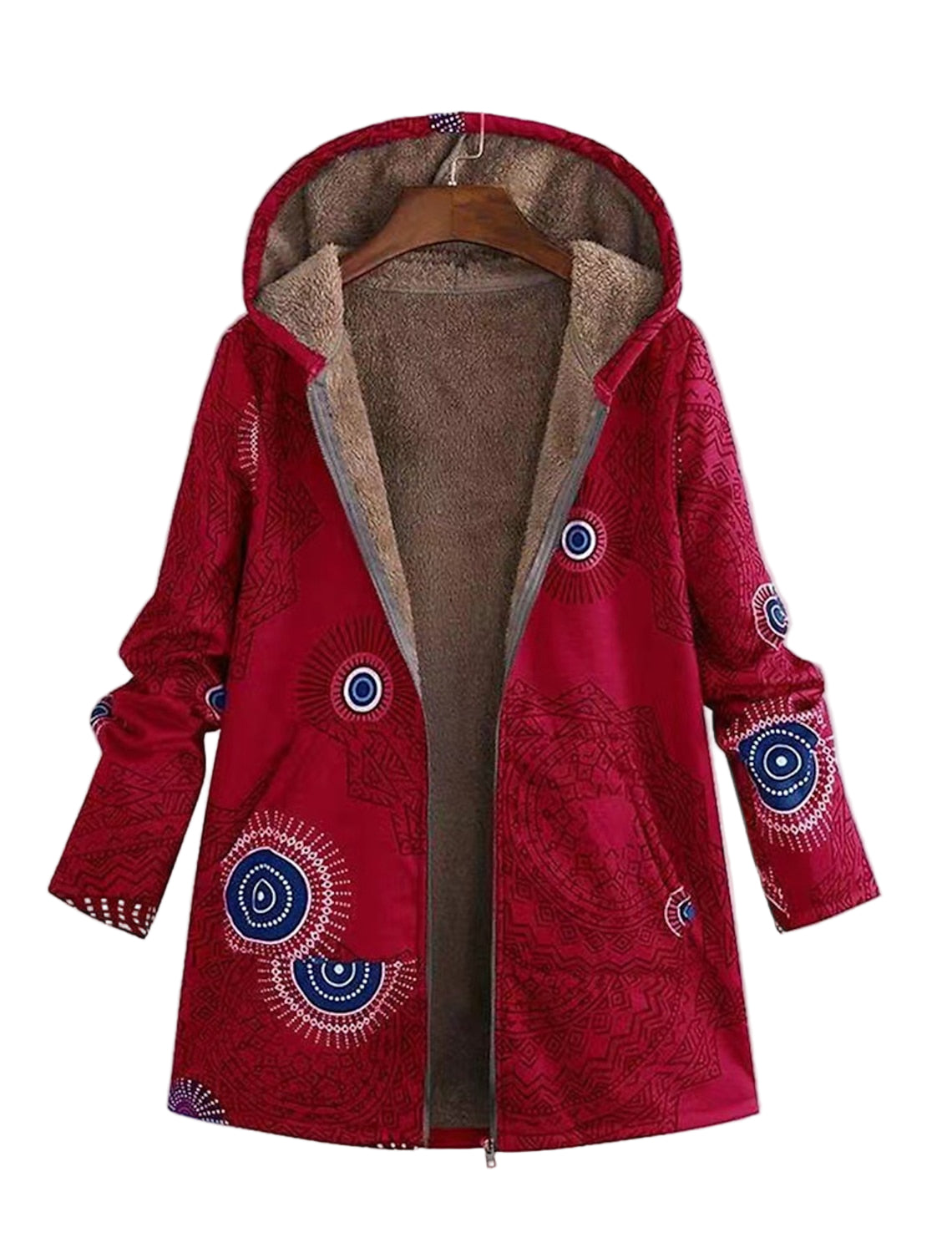 Jackan är prydd med djärva, geometriska mönster som ger en modern touch. Den hel dragkedjan och huvan gör den både praktisk och stilren, perfekt för både vardag och mer avslappnade tillfällen.